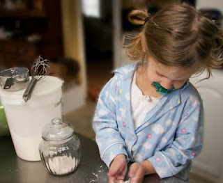I made up a batch of biscuit dough and Emily rolled and cut some herself. She had such a darling time and was occupied with her task all throughout the rest of breakfast preparations.